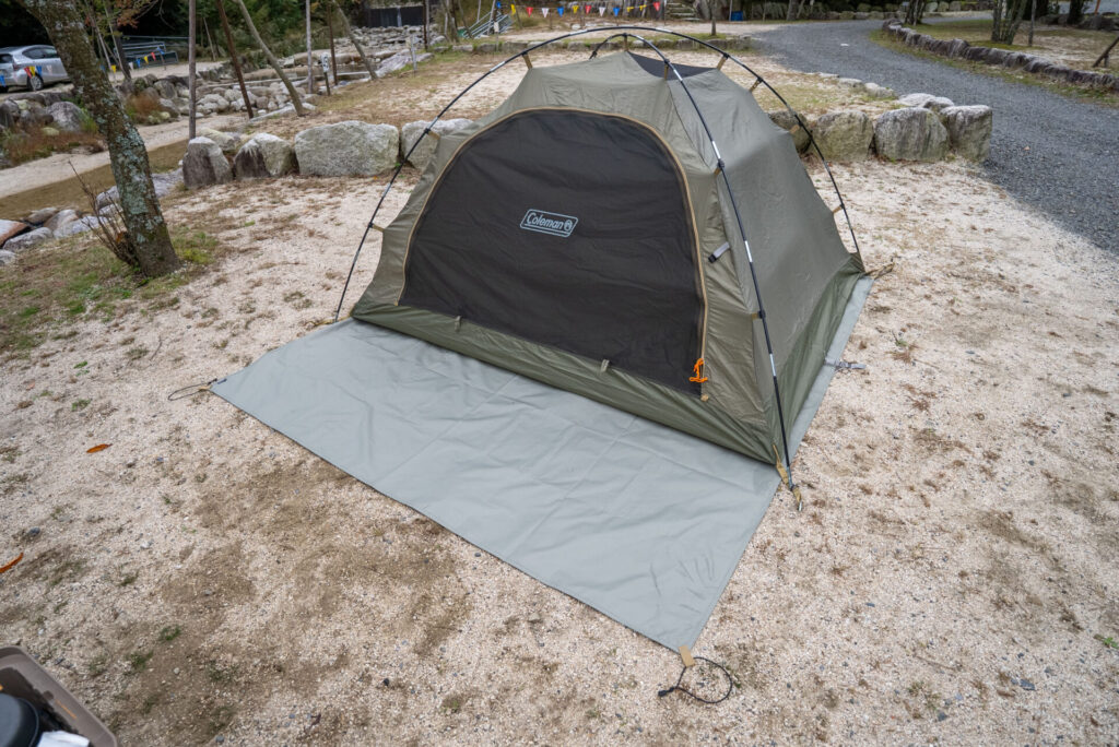 この商品だけで見ると、目を惹く魅力は少ないのですが、実際にテントの下に敷くといい仕事をしてくれるんです。