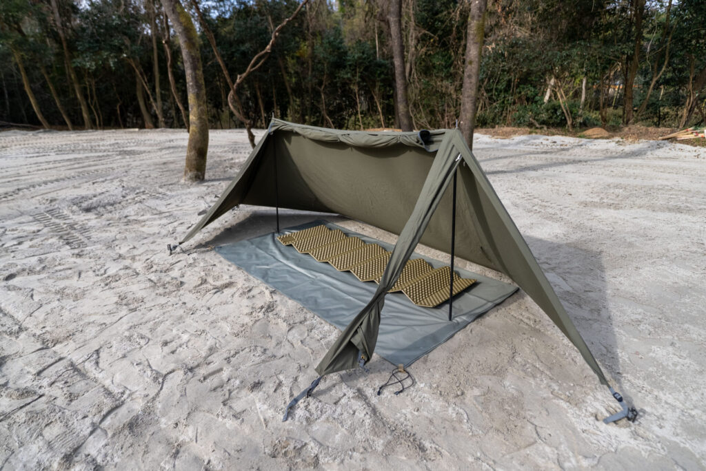 「地面のゴツゴツからテントを守るタフさ」と「サッと持ち運べる軽快さ」。