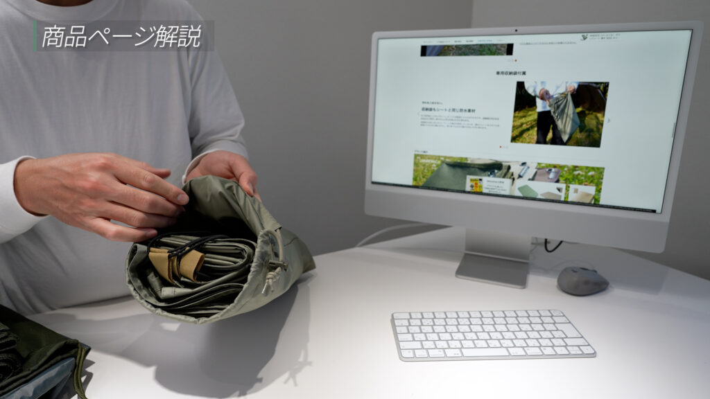 そこで、オートキャンプを中心に、十分な耐久性と扱いやすい重さの両立を目指して辿り着いたのが「300D」という厚さです。触っていただくとシャカシャカとした軽い音ではなく、しっかりとした重厚感を感じていただける設計になっています。