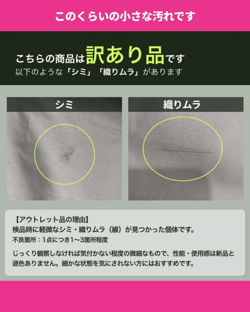 商品はAmazon、楽天市場、メルカリShopsにて販売中です。 また、ご使用には全く問題がない程度の「小さなシミ」や「織りムラ」がある製品を、「訳あり品(アウトレット)」として楽天市場やメルカリShopsでお得な価格で販売しております。細かい汚れは気にしないから安く手に入れたい!という方は、ぜひそちらもチェックしてみてください。