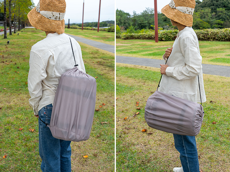 - 専用収納袋が付属。持ち手があるので背負って運ぶことができます。