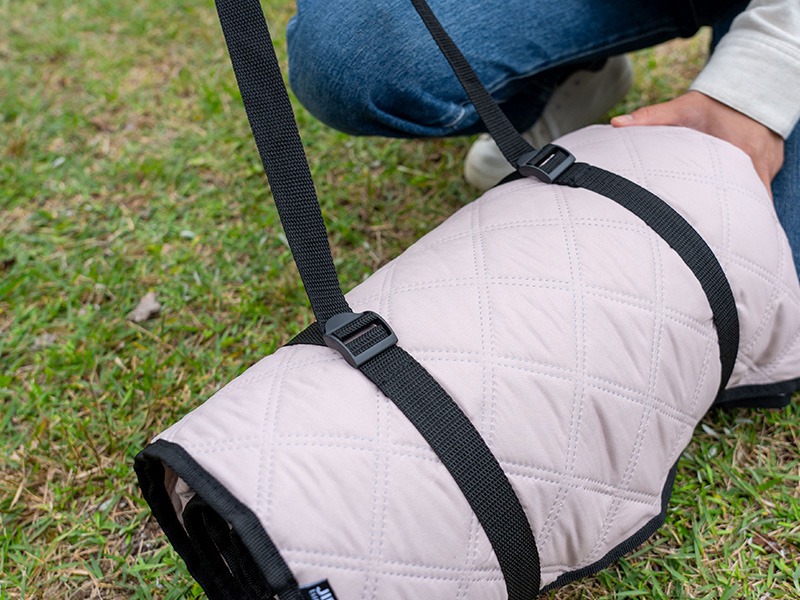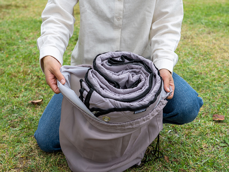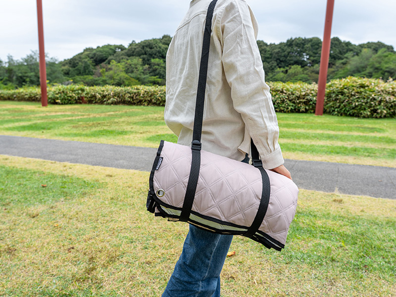 さらに扱いやすい収納袋にすることで本当の意味で持ち運びやすく、出番の多いレジャーシートとなりました。