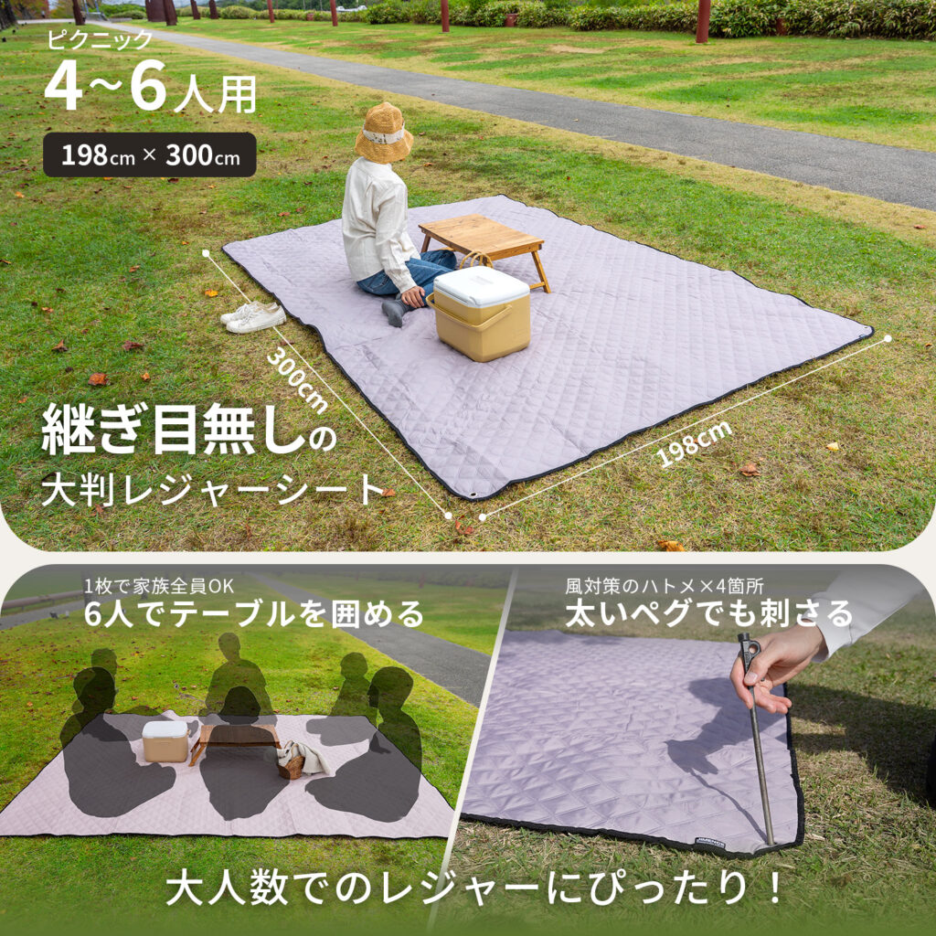 - ほとんどのレジャーに対応できるとともに、テント内のインナーシートとしても使えるサイズです。