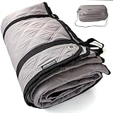 裏面は強力なアルミフィルムによる防水で水を通しません。濡れた地面の上でも安心して過ごせます。また、アルミによって地面の冷気を軽減する効果も期待できます。